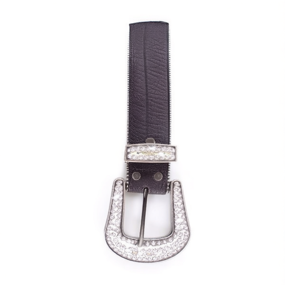 Cintura Angelina in vera pelle 3,8 cm x 105 cm con fibbia con strass, cintura casual da donna alla moda