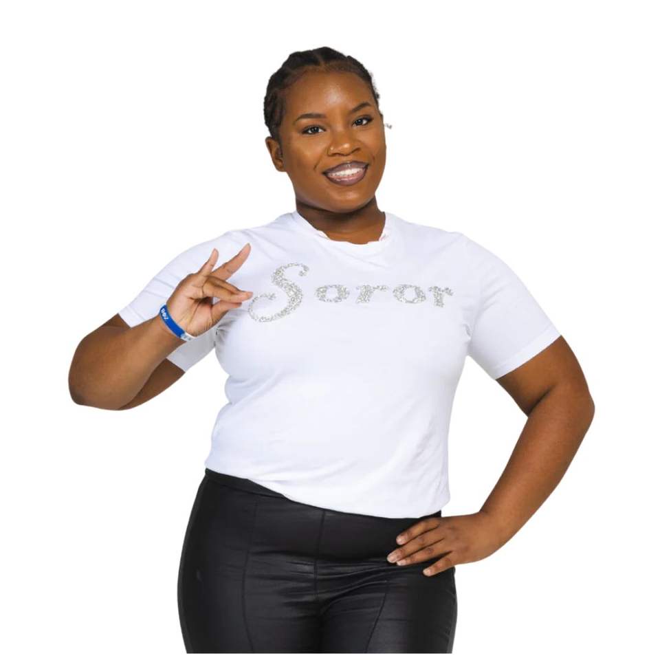 White Diamond Soror Shirt SGRho Sorority Apparel Women 100 Cotton Sequin Embroidered Greek Letters Tee Greek Life Pride Fashion