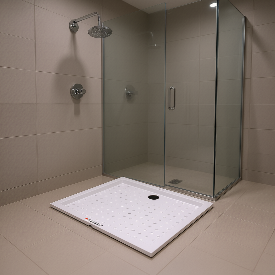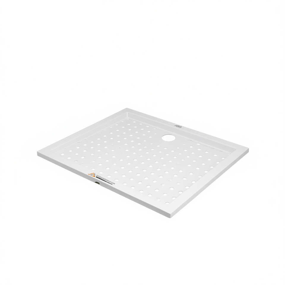 White Rectangular ABS Shower Base Tray 35.4x27.6x1.6 In Center Drain Decorative Minimalist Design