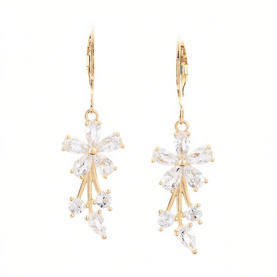 White E464 Flower Drop Earrings 18K Gold Filled Crystal Rhinestone Wedding Women's Romantic Style