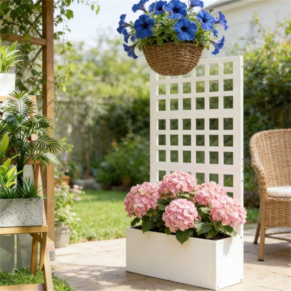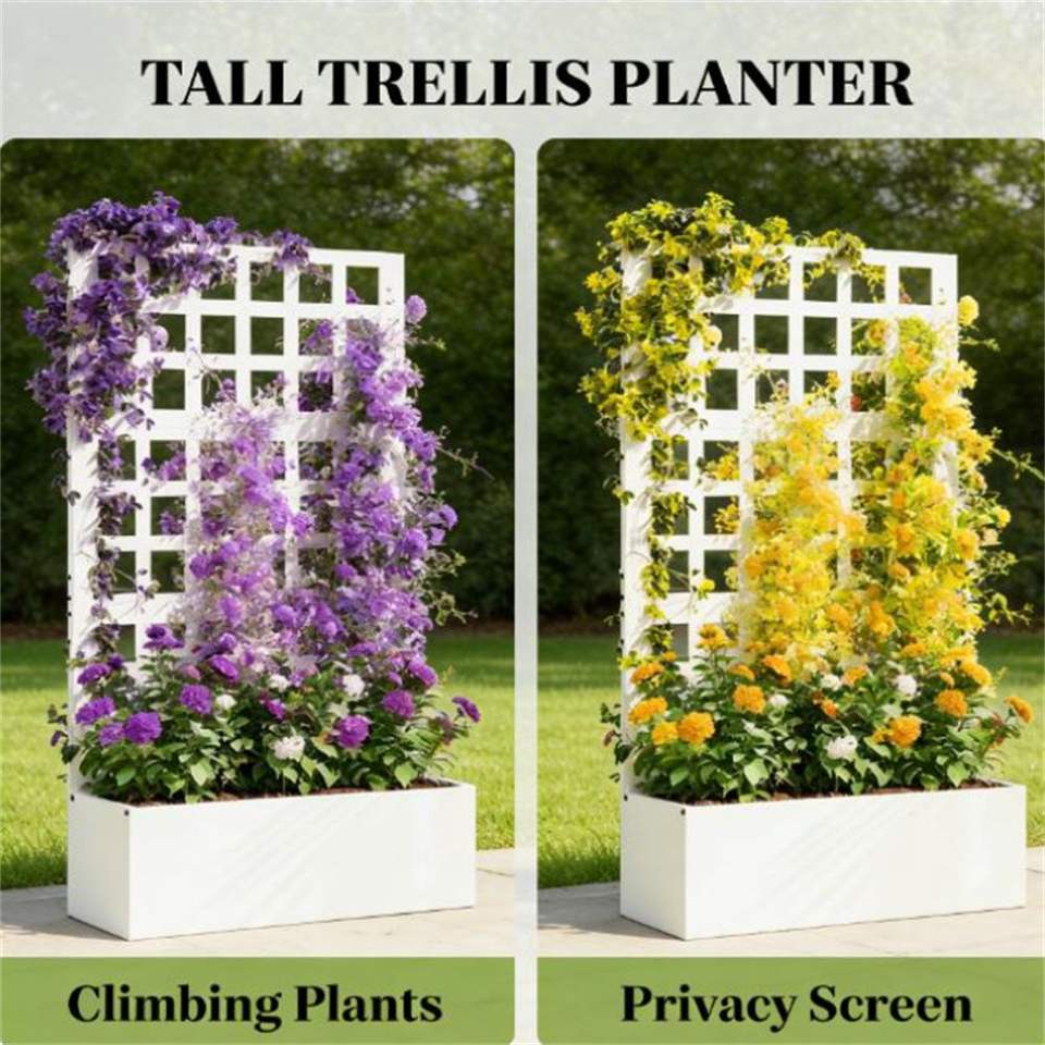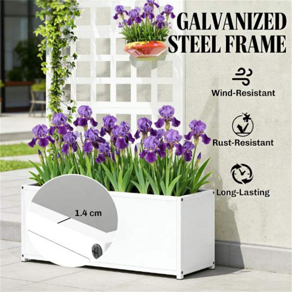 Fioriera Rialzata Bianca e Vaso da Giardino con Traliccio e Cancelli Durevoli per Piante e Fiori da Esterno