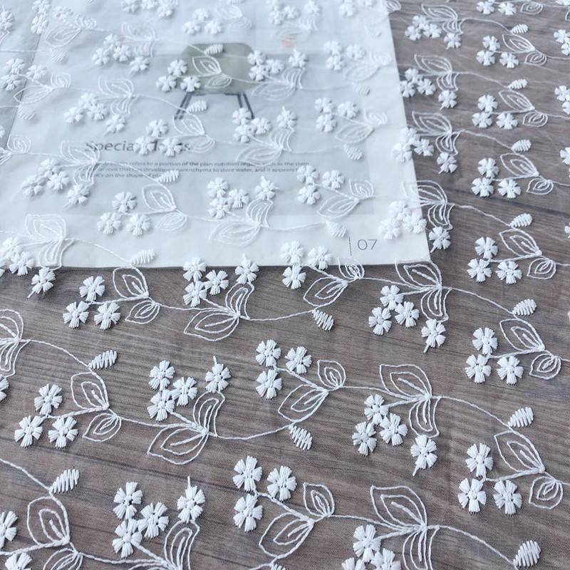 White Embroidered Lace Mesh Fabric Organza Fabric Clothing Skirts Wedding Photography Background Cloth