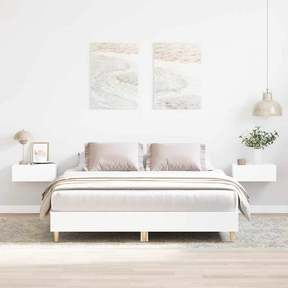 Struttura letto matrimoniale in legno ingegnerizzato bianco, moderna e resistente, per camera da letto