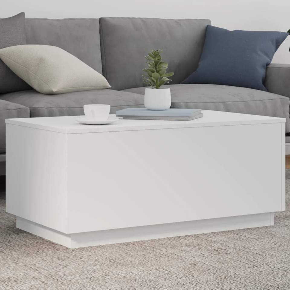 White Engineered Wood Coffee Table with Lights 35.4 X 19.7 X 15.7 in