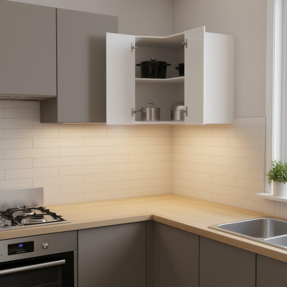 Mobile Angolare da Parete in Legno Ingegnerizzato Bianco, Design Moderno Compatto per Cucina, Profondità 12-17,9 Pollici