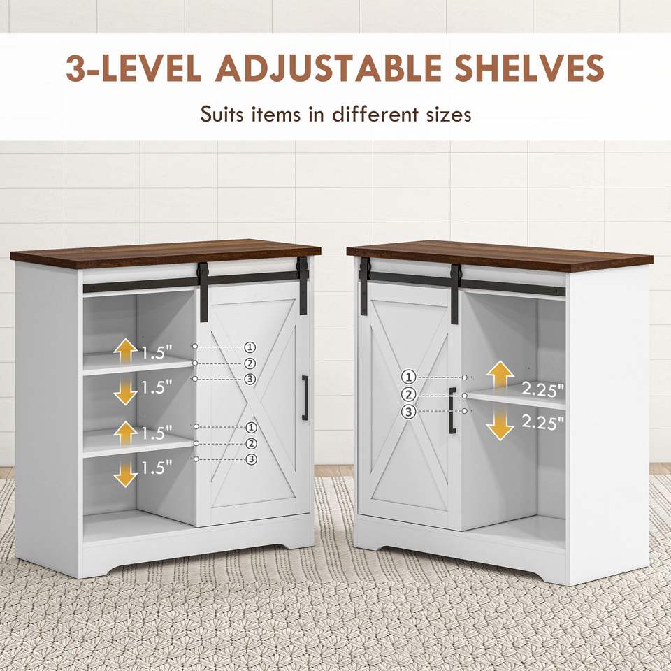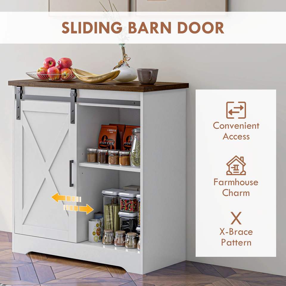 Credenza da Cucina in Stile Country Bianco con Porta Scorrevole e Ripiano Regolabile per Bar del Caffè