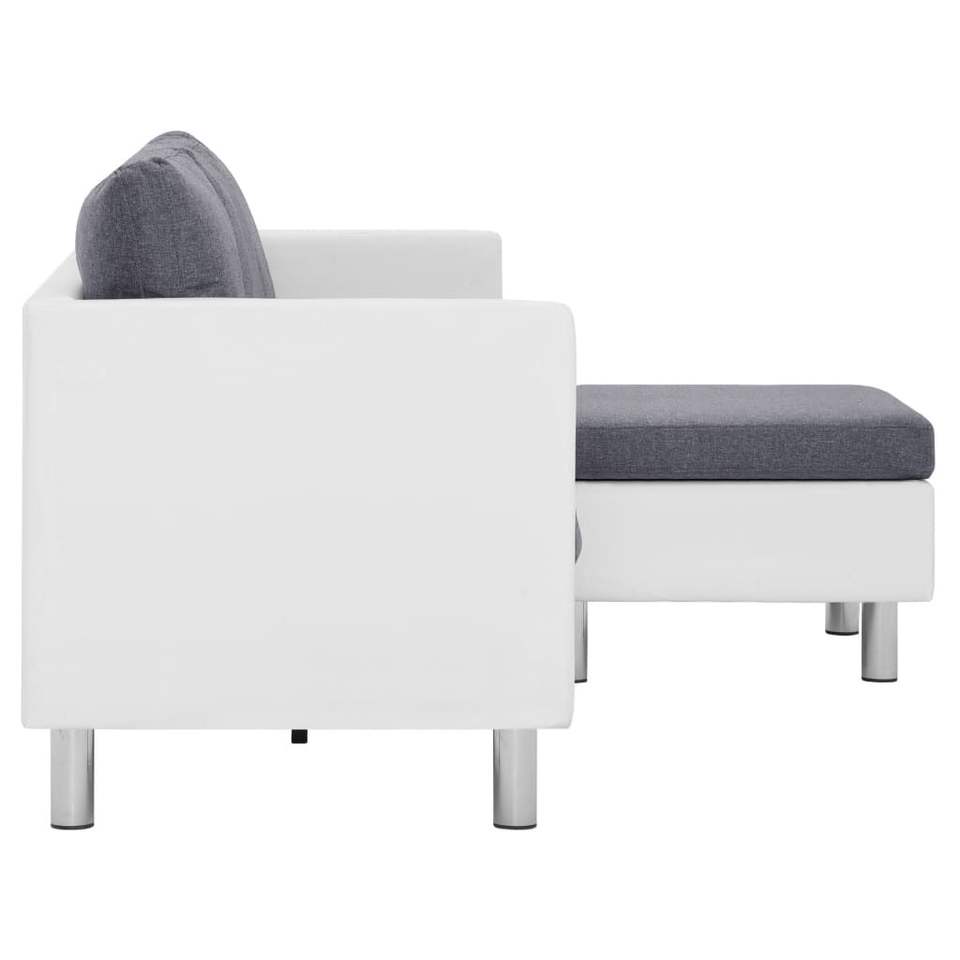 White Faux Leather Polyester Sofa with Wooden Slats and Chrome-Plated Iron for Living Room