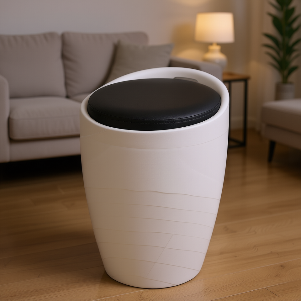 Sgabello Ottomano in Ecopelle Bianca, Arredamento Moderno per Casa, Accessorio Decorativo per Soggiorno