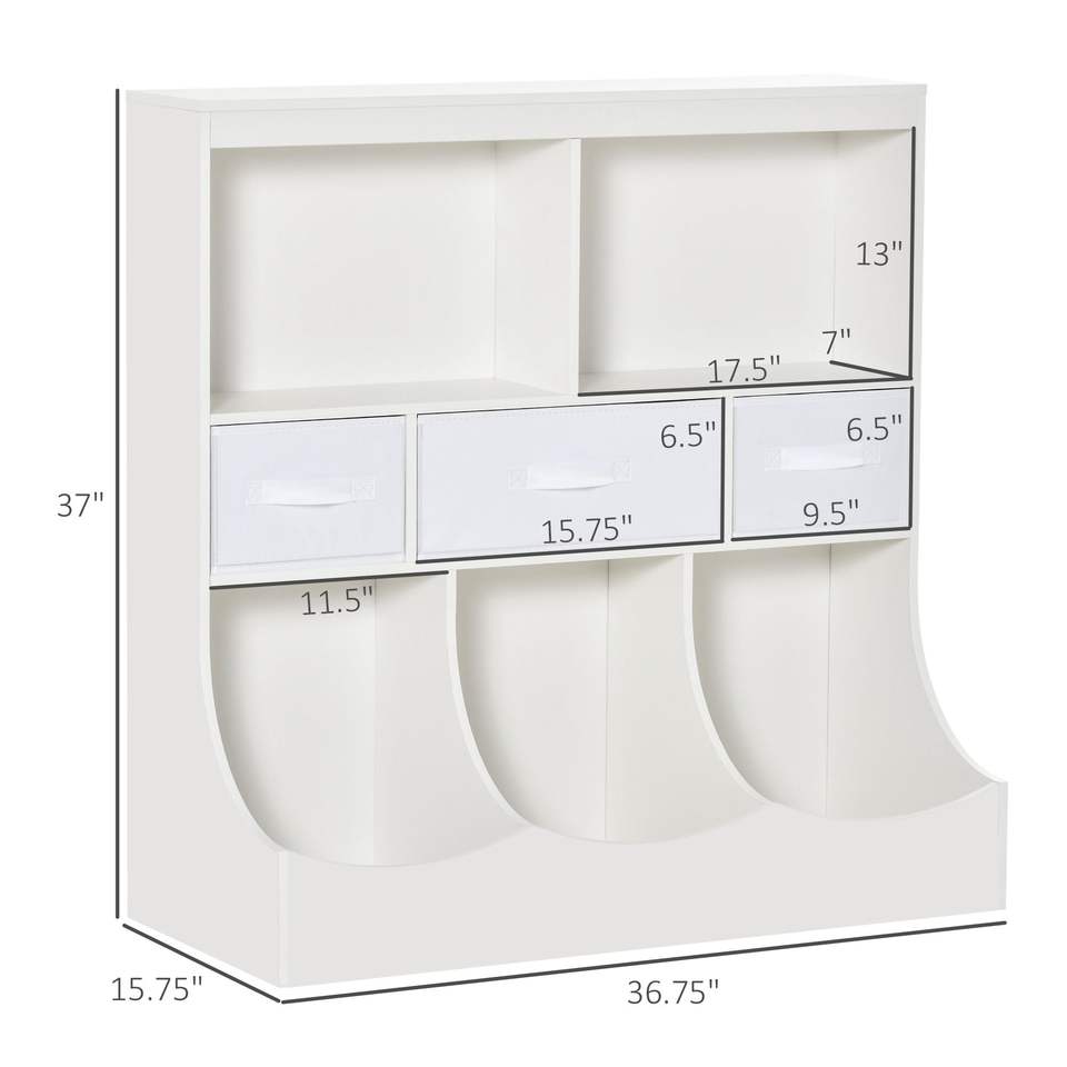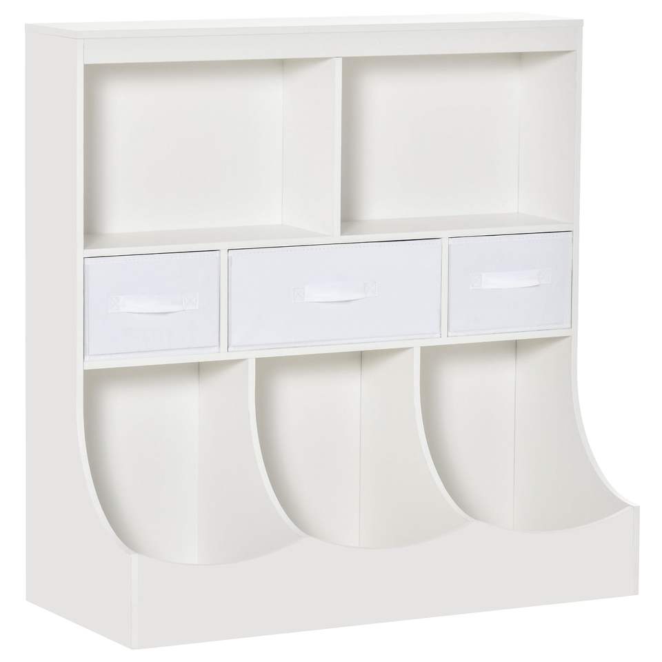 White Freestanding Kids Cabinet with Drawers Toy Storage Organizer and Bookcase Display Shelf for Bedroom Wardrobe