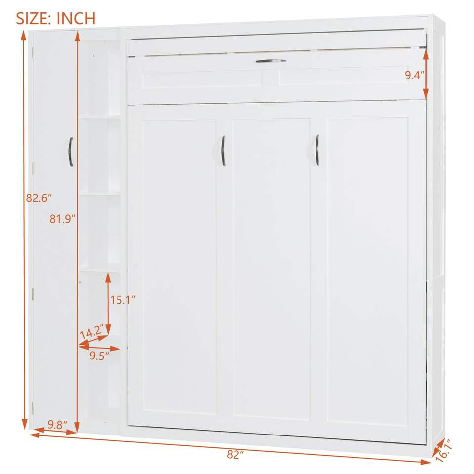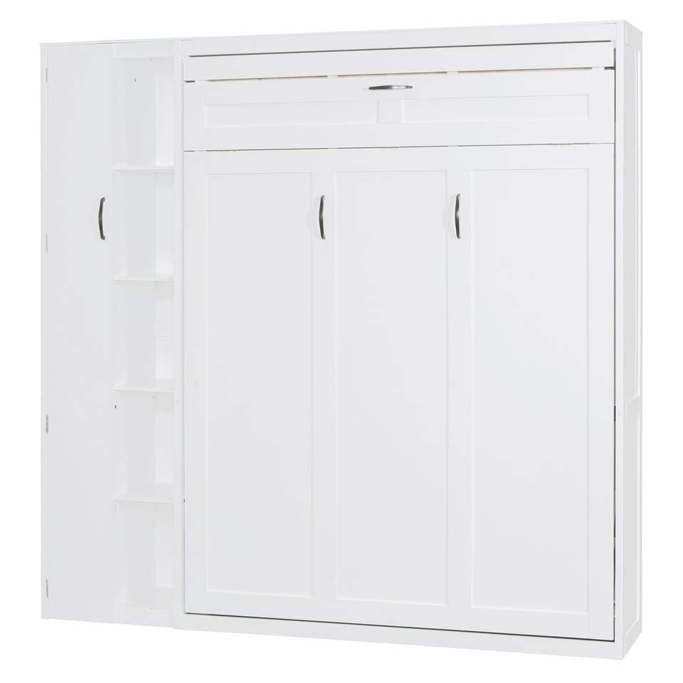 White Full-Size Murphy Bed with Shelves and Wardrobe LED Lights Wall Bed Design