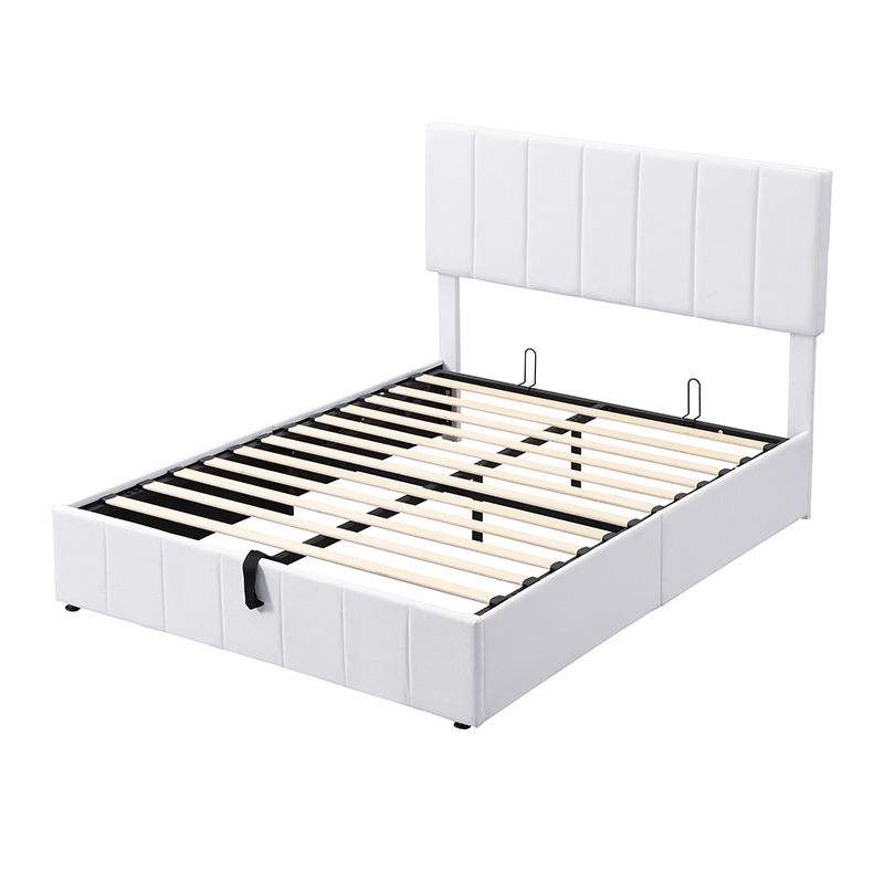 Letto matrimoniale imbottito bianco con piattaforma e sistema di stoccaggio idraulico (Vecchio SKU LP000111AAK)