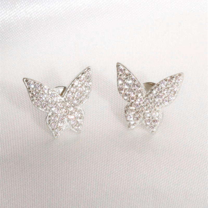 Orecchini Pendenti a Farfalla in Oro Bianco con Cristalli Rosa, Placcati in Argento 925, Gioielli da Donna per Uso Quotidiano con Micro Incastonature