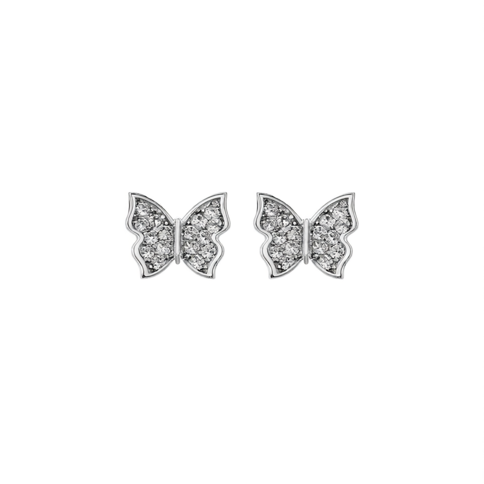 White Gold Butterfly Stud Earrings With Crystal Rhinestones For Women Gift Cute Fashion Jewelry Alloy Micro Insert