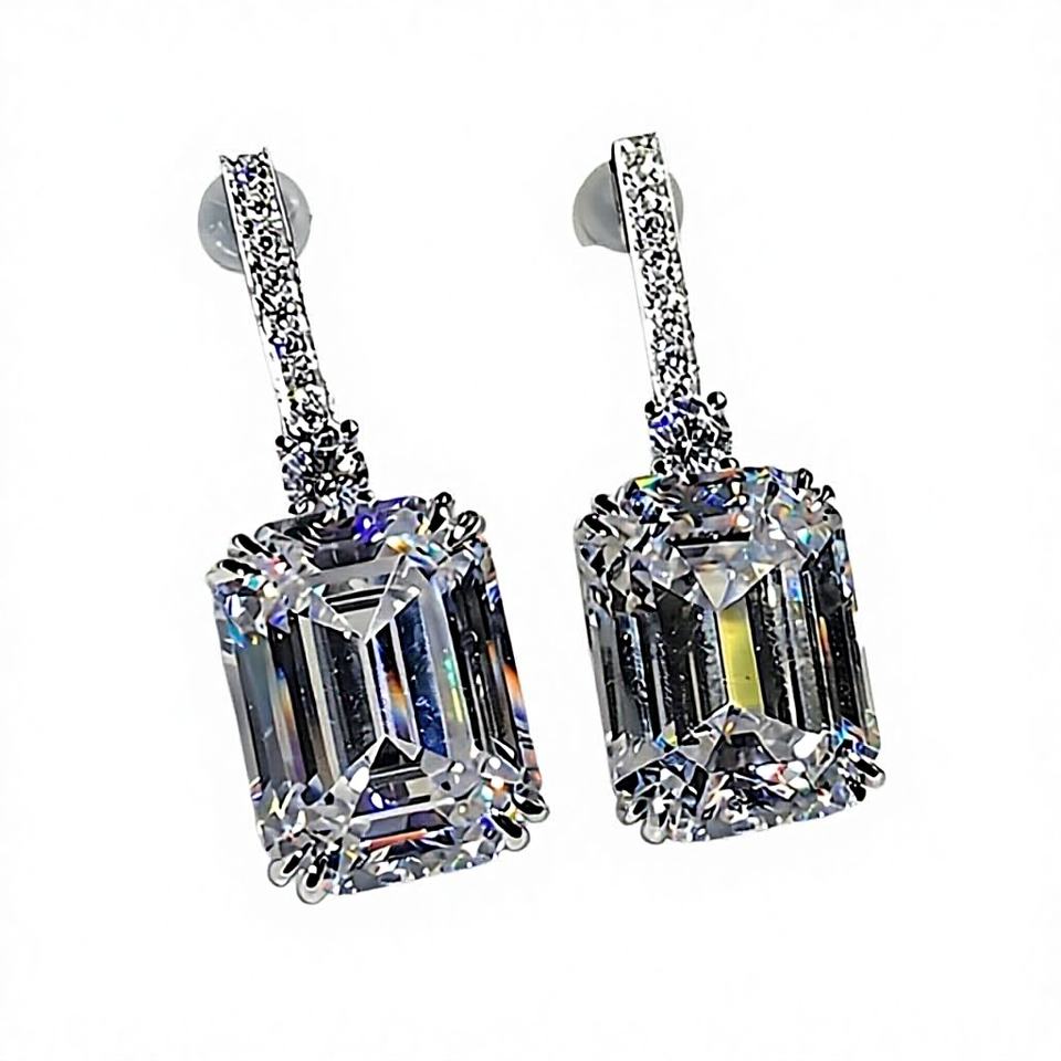 Orecchini in Oro Bianco con Diamanti Taglio Smeraldo Colore D Naturale Certificati per Gioielli Classici da Matrimonio per Donne