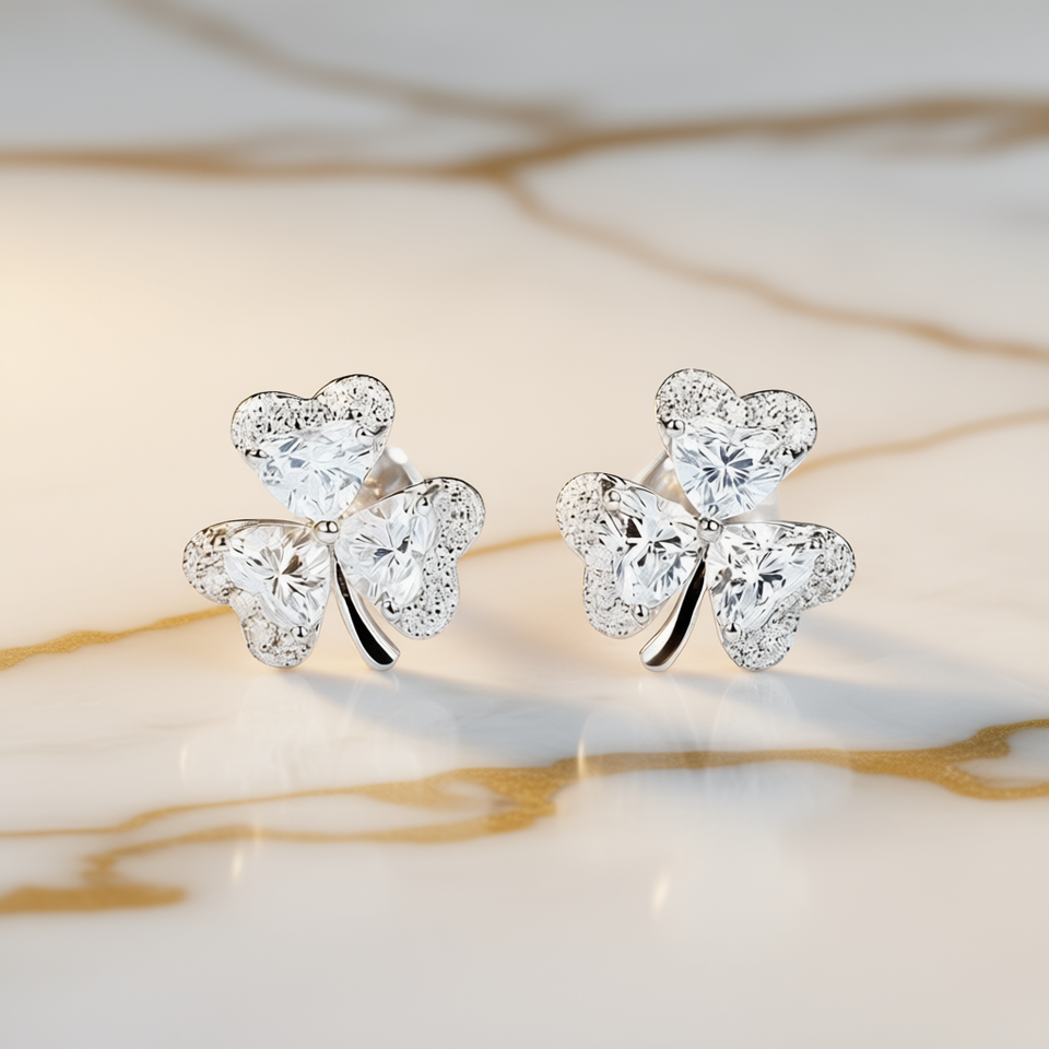 Orecchini in Oro Bianco Certificato con Diamanti Naturali Taglio a Cuore Colore G e Diamanti Laterali, Stile Classico, Gioielli da Donna per Uso Quotidiano