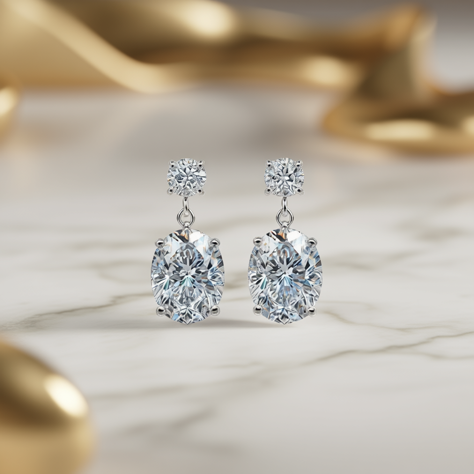 White Gold Diamond Earrings Oval Cut D Color Natural GIA Certified Classic Wedding Jewelry For Women