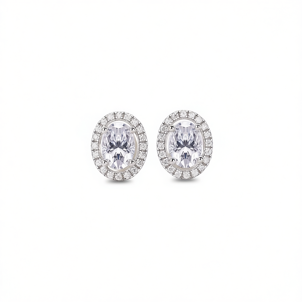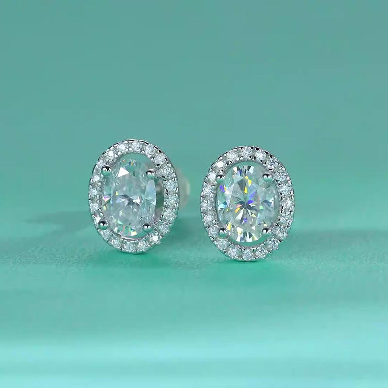 White Gold Diamond Earrings Oval Cut D Color Natural Diamond Classic Style Women's Wedding Jewelry