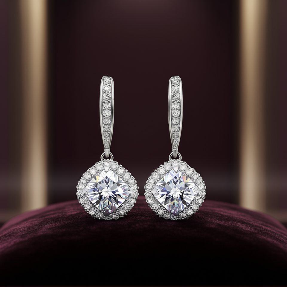 White Gold Diamond Earrings Princess Cut D Color Natural Diamond Women's Wedding Classic Style Jewelry