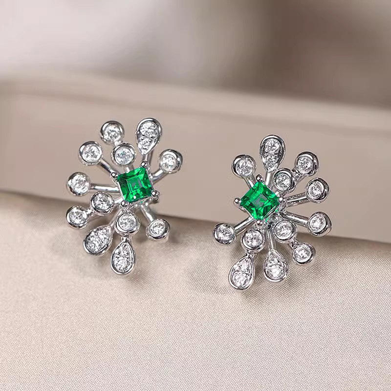 White Gold Diamond Earrings Princess Cut Emerald Center Luxury Women's Party Jewelry D Color Natural Diamonds
