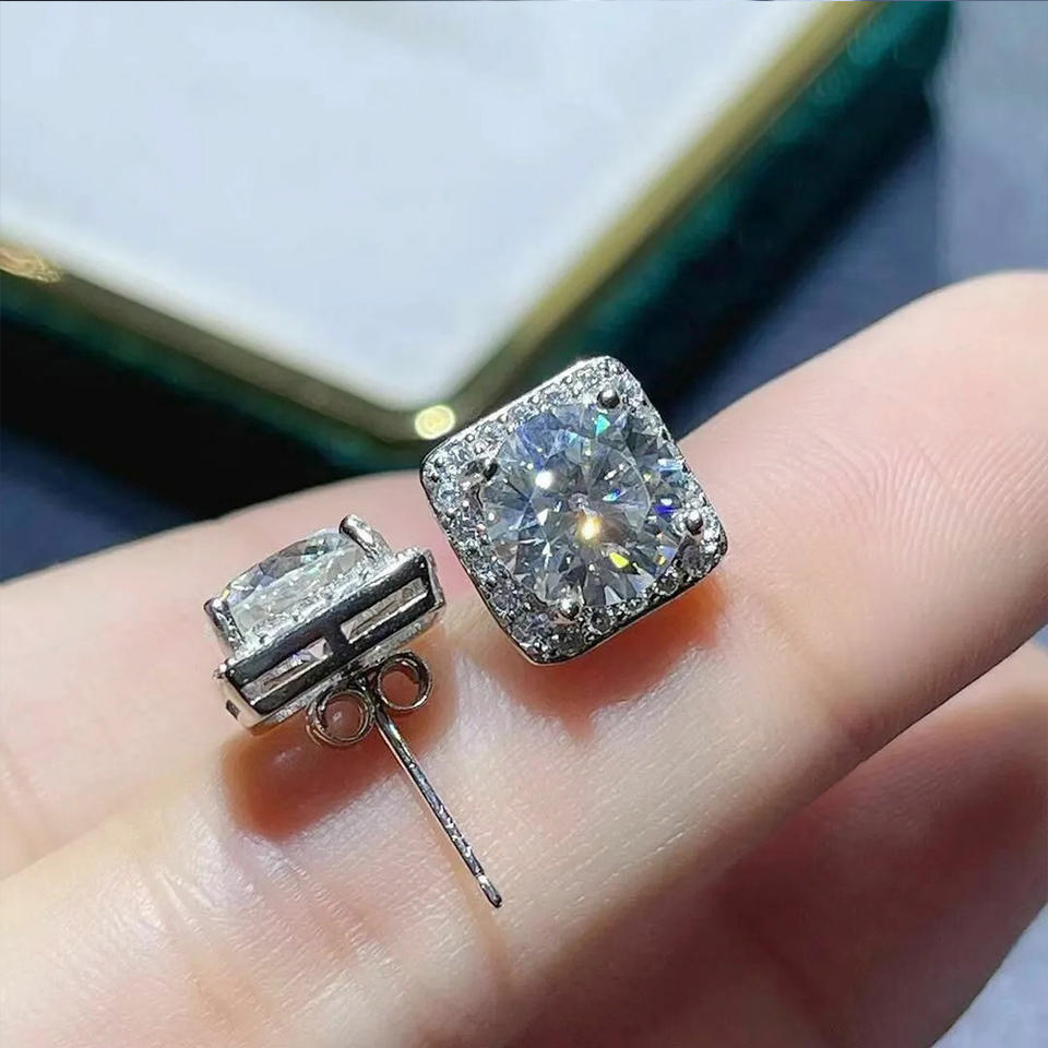 Orecchini in oro bianco con diamanti taglio principessa, diamanti naturali, stile classico da donna E1874