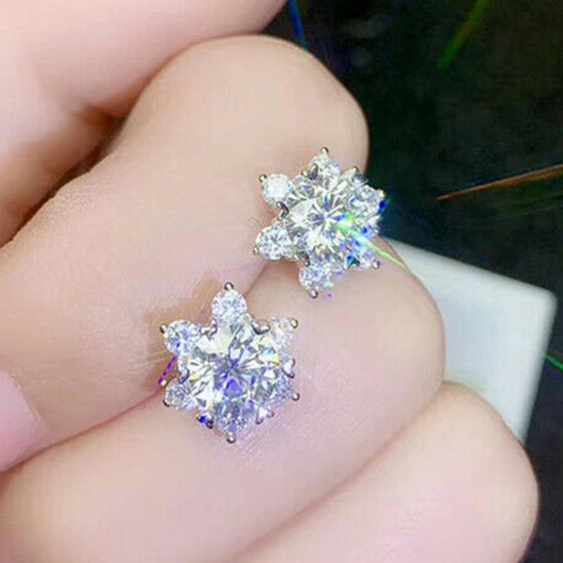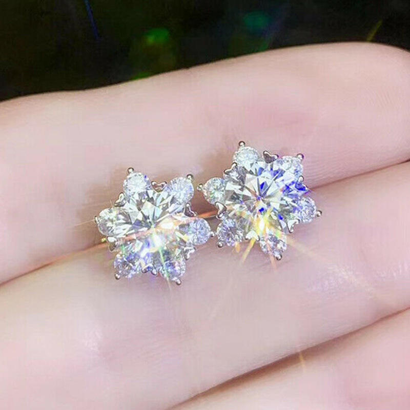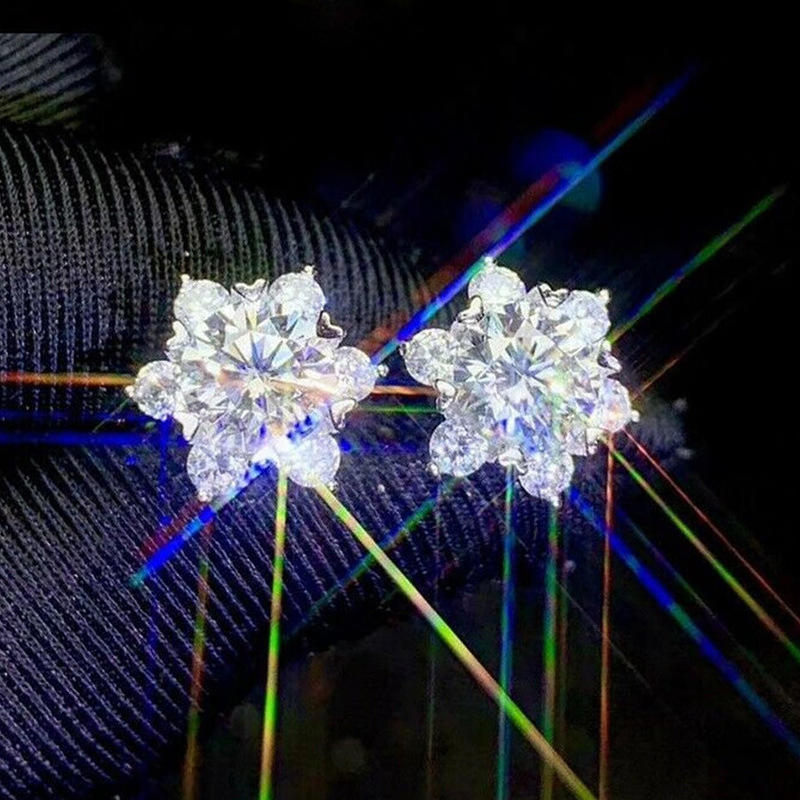 White Gold Diamond Earrings Round Brilliant Cut D Color Natural GIA Certified Wedding Classic Women's Jewelry