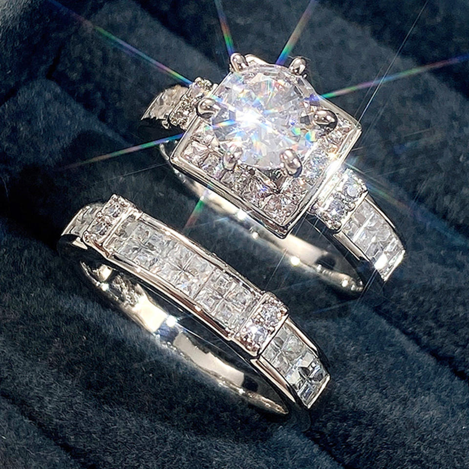 White Gold Diamond Engagement Ring Women's Natural Round Brilliant Cut G Color Side Stones DJ019
