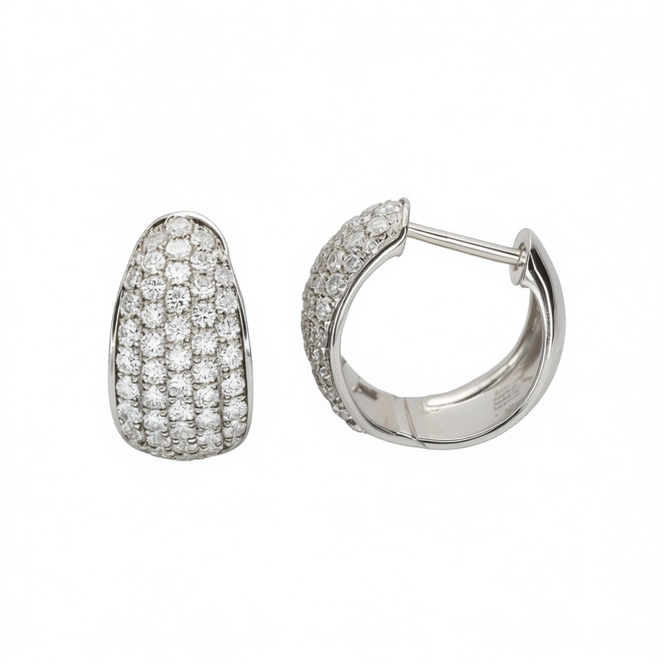 Orecchini a Cerchio in Oro Bianco con Diamanti, Taglio Brillante Rotondo, Lusso per Uso Quotidiano Femminile