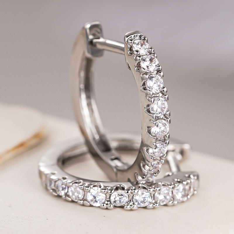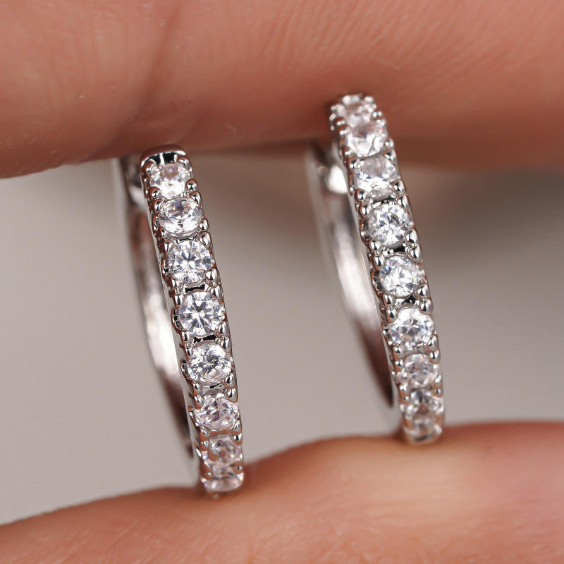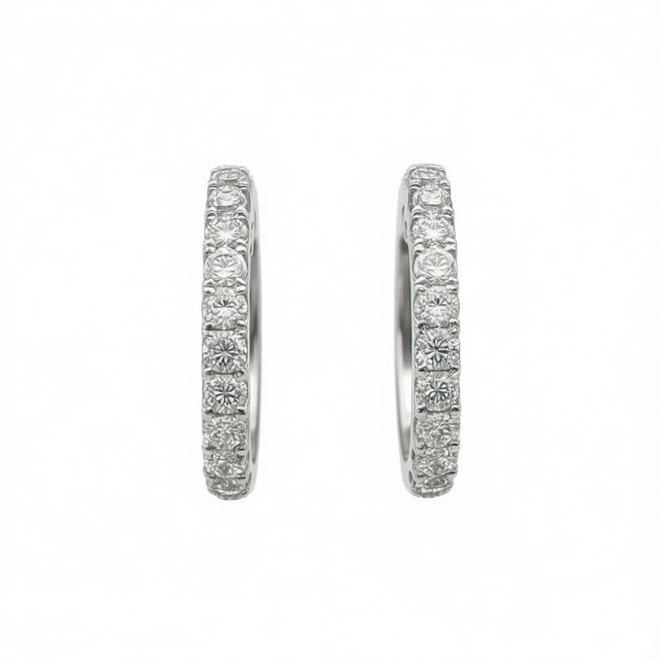 Orecchini a Cerchio in Oro Bianco con Diamanti Taglio Brillante Rotondo, Incastonatura a Canale, Gioielli Classici da Donna per Matrimonio