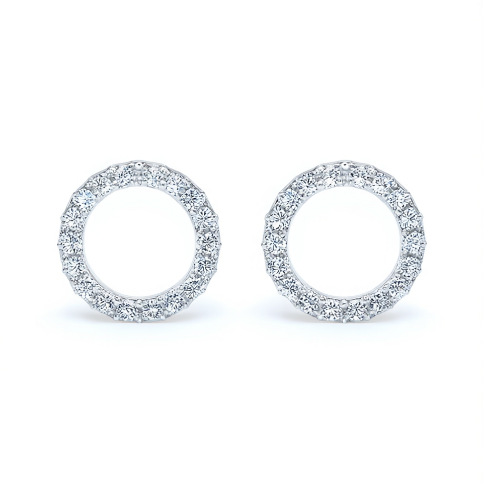 Orecchini a Cerchio in Oro Bianco con Diamanti Taglio Brillante Rotondo, Montatura a Griffe, Gioielli Classici da Sposa per Donna