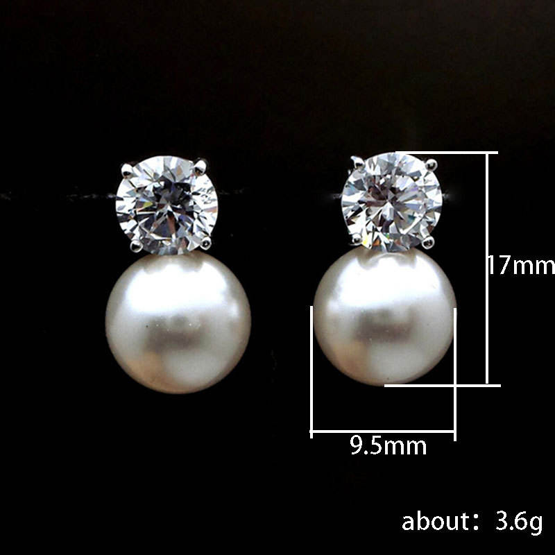 White Gold Diamond Pearl Earrings Round Brilliant Cut D Color Natural Classic Women's Wedding Jewelry