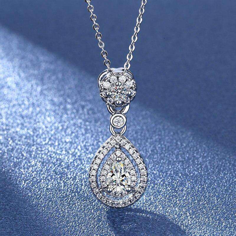 Ciondolo in Oro Bianco con Diamante Taglio a Pera, Diamante Naturale Certificato GIA, Gioielli da Matrimonio, Stile Classico da Donna