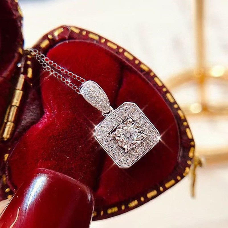 Ciondolo in oro bianco con diamante taglio principessa, colore G, diamante naturale, gioielli classici da fidanzamento da donna