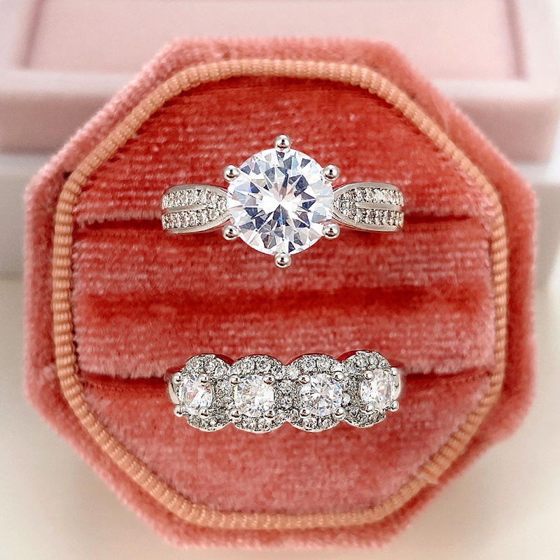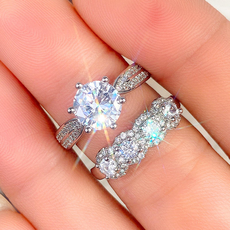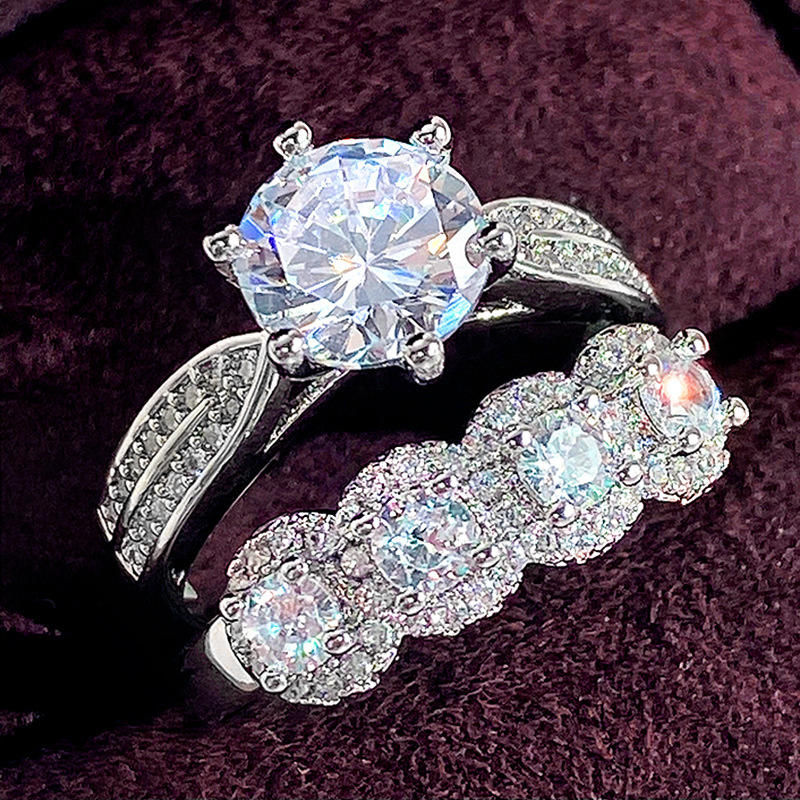 White Gold Diamond Ring Women's Engagement Round Brilliant Cut Natural G Color Side Stones DJ036