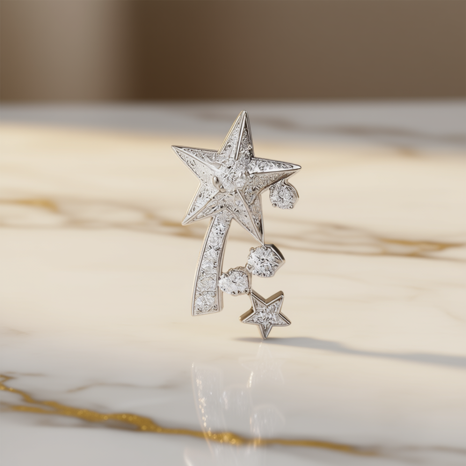 Spilla a Stella in Oro Bianco con Diamanti, Taglio Brillante Rotondo, Colore Naturale D, Gioiello di Lusso da Donna per Feste
