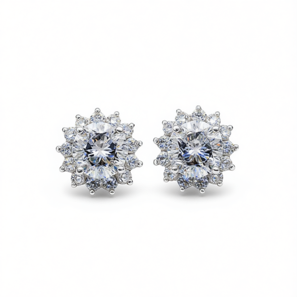 White Gold Diamond Stud Earrings Round Brilliant Cut Flower Shape Claw Setting Classic Women's Wedding Jewelry