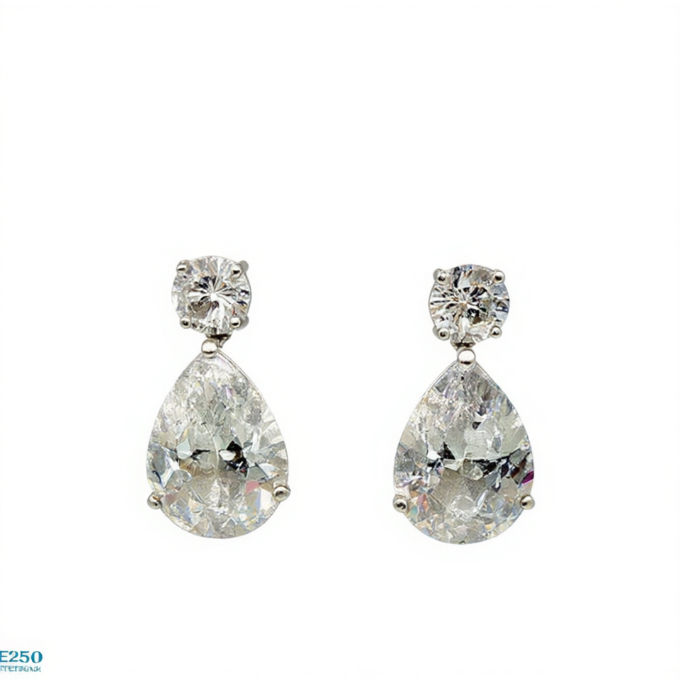 Orecchini Pendenti Classici da Donna in Oro Bianco E270 con Zirconi Taglio a Pera, Gioielli da Sposa con Montatura a Griffe in Lega