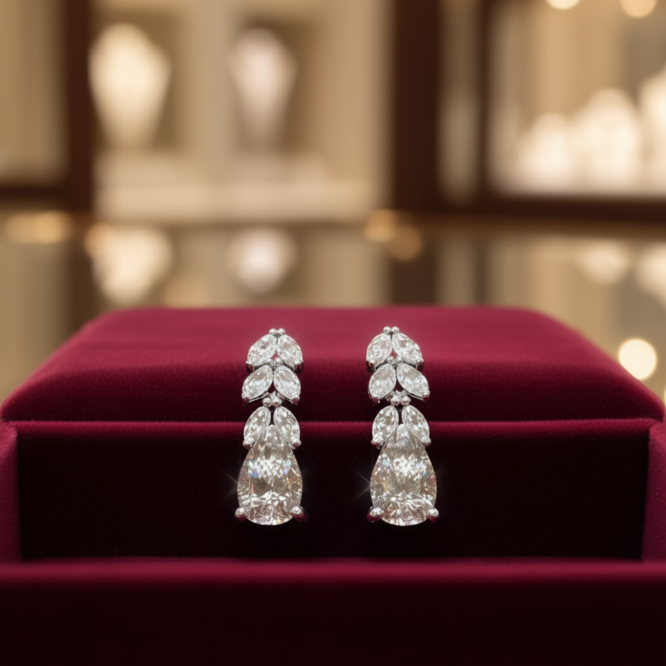White Gold E424 Diamond Earrings Pear Cut D Color Natural Women's Wedding Classic Style Jewelry