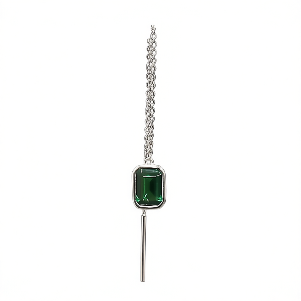 White Gold Emerald Cut Drop Earrings 925 Silver Bezel Setting Geometric Minimalist Women's Everyday Wear