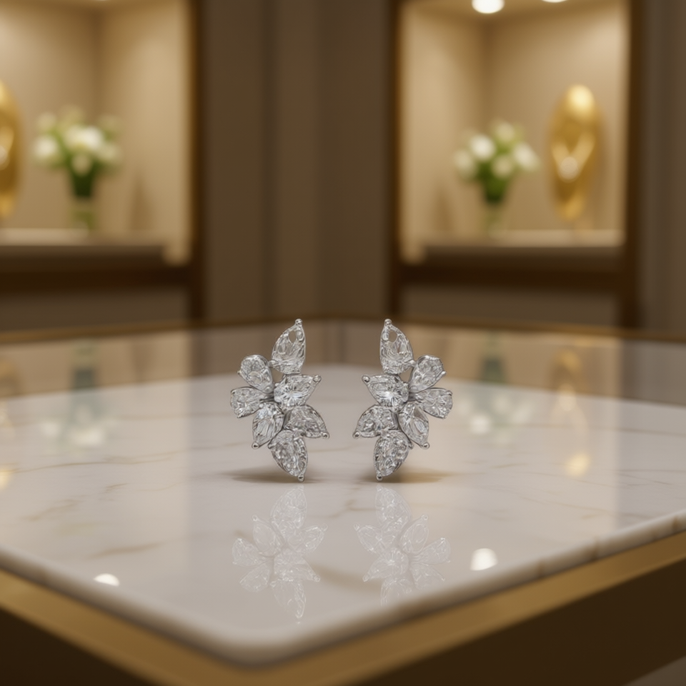 White Gold Flower Stud Earrings Marquise Cut Zircon Claw Setting Women's Wedding Romantic Fashion Jewelry