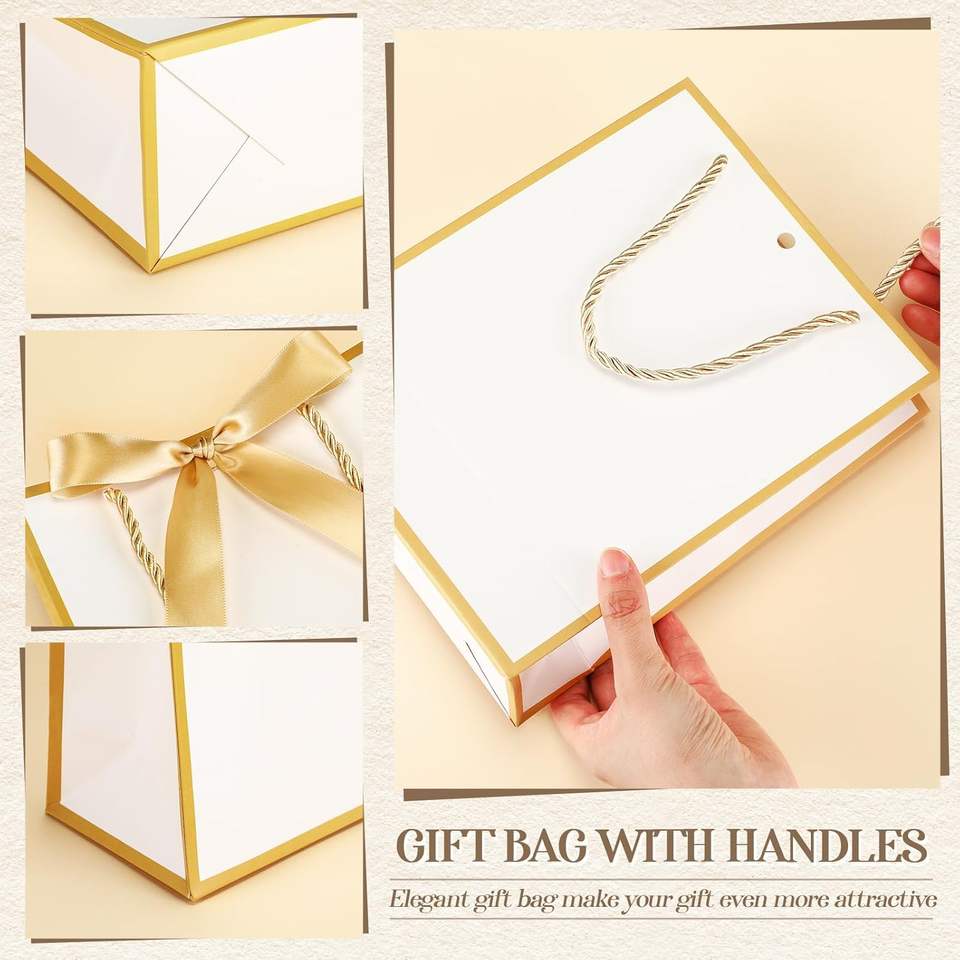 Sacchetti Regalo in Oro Bianco con Manico, Sacchetti Regalo con Fiocco per Capodanno, San Valentino, Matrimoni, Compleanni, Natale