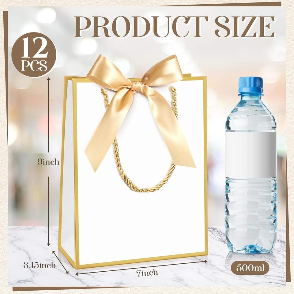 Nome del prodotto:Borse Regalo in Oro Bianco con Manico Borse Regalo con Fiocco e Nastro