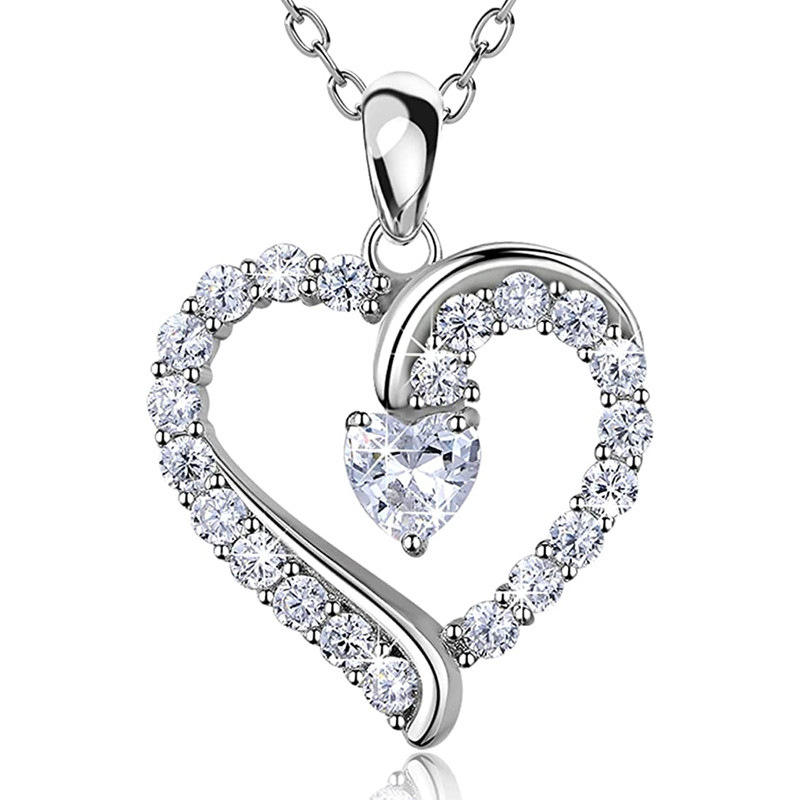 Collana con ciondolo a forma di cuore in oro bianco con strass di cristallo per le donne, gioielli con catena a maglie in stile romantico da matrimonio