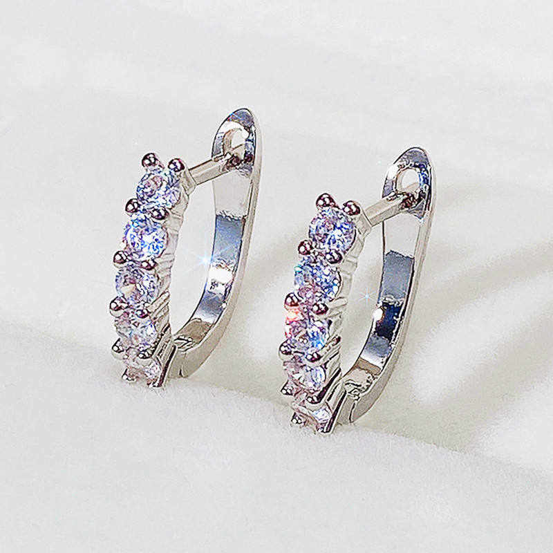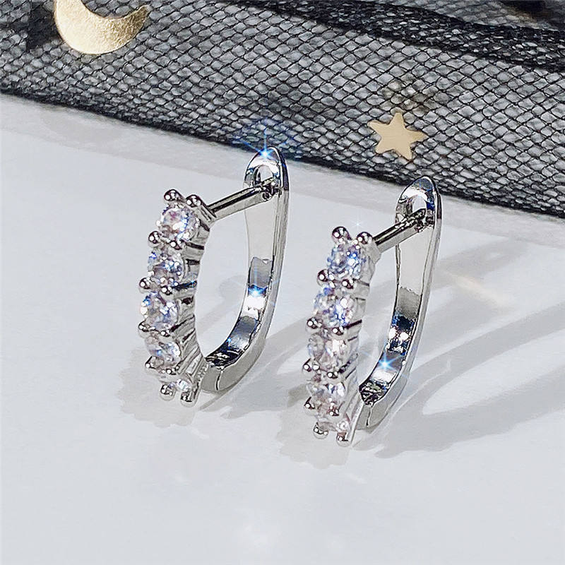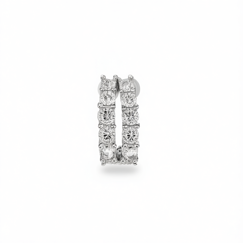Orecchini a Cerchio in Oro Bianco con Zirconi Rotondi Incastonati, Gioielli Classici da Donna per Feste
