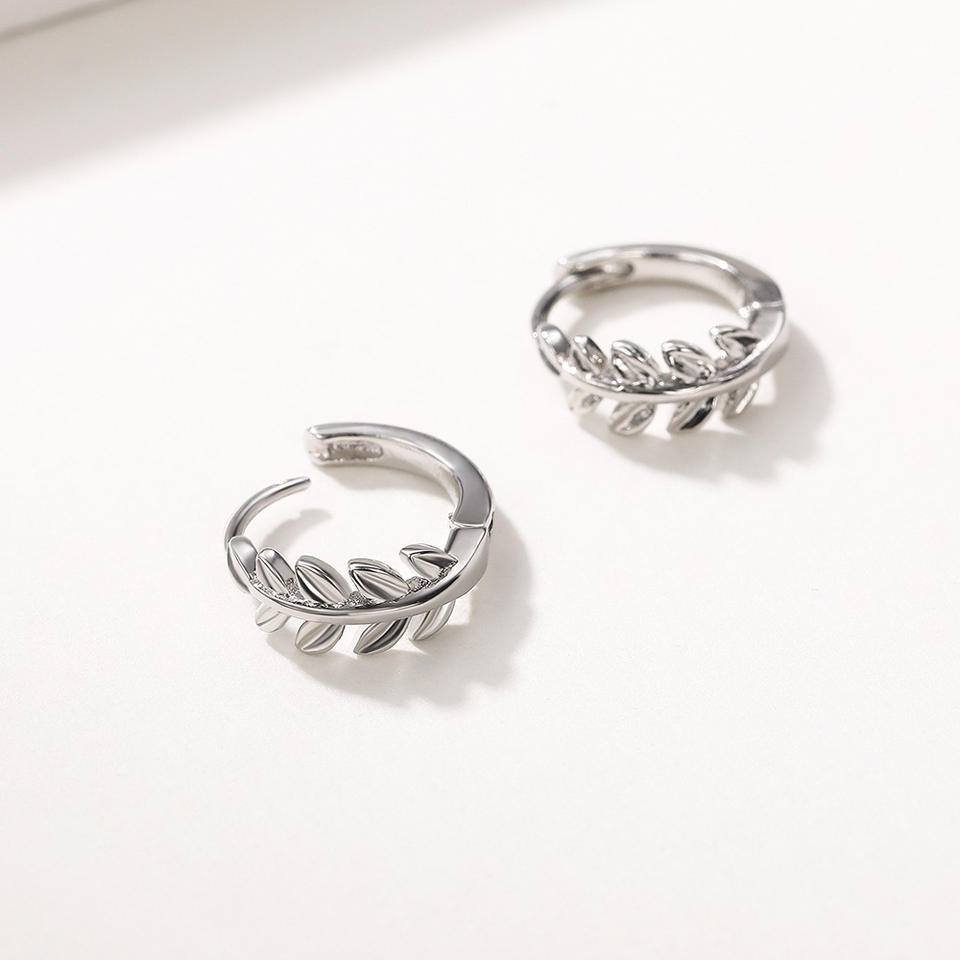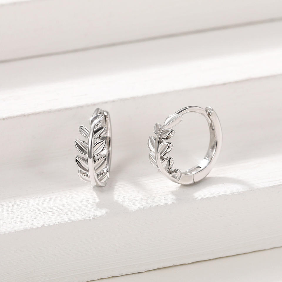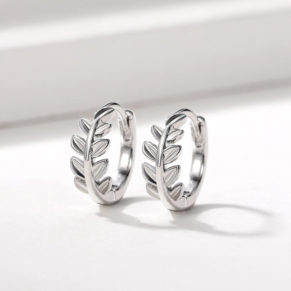 White Gold Huggie Earrings 925 Silver Plant Design Minimalist Style Women's Everyday Wear Jewelry