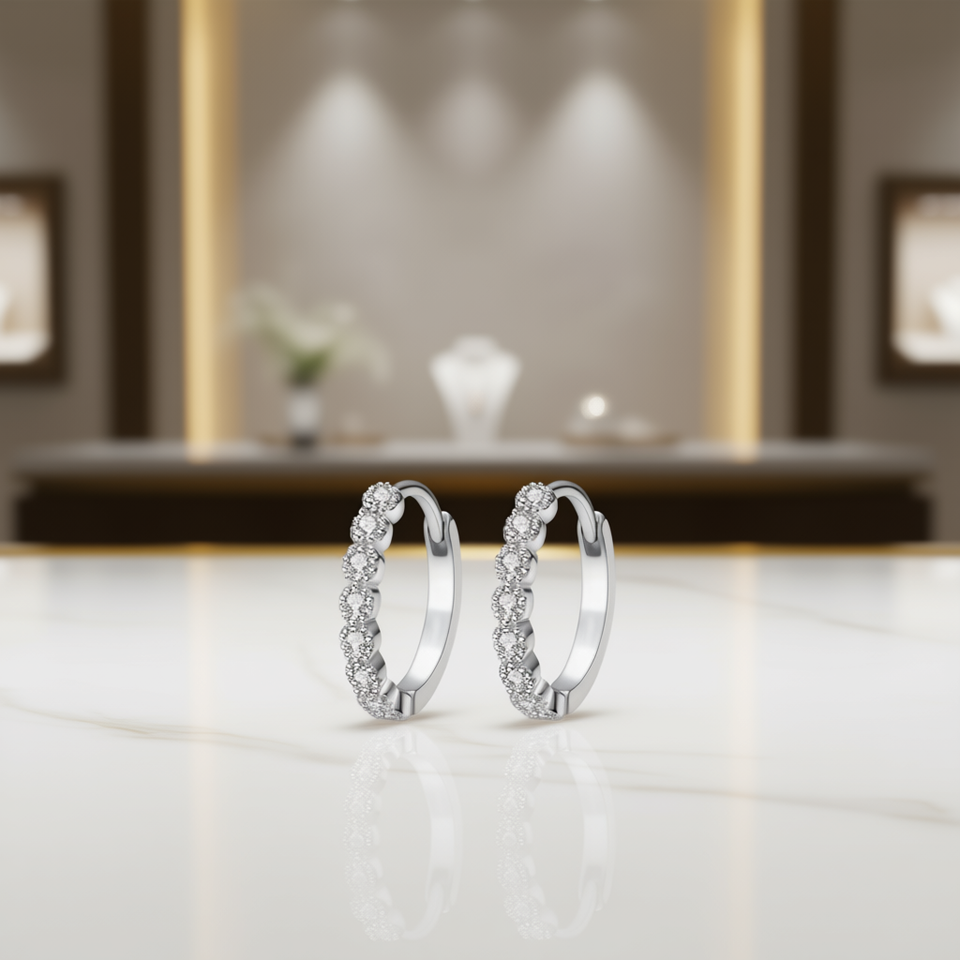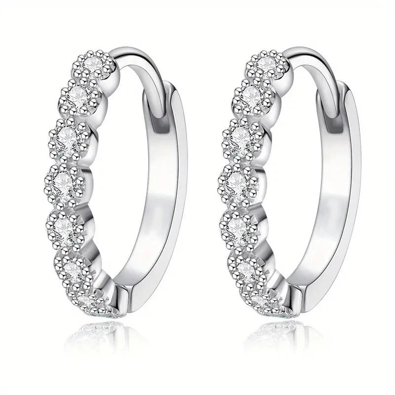 White Gold Huggie Earrings 925 Silver Rhodium Plated Crystal Rhinestone Bezel Setting Classic Women's Everyday Wear