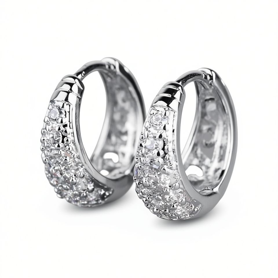 White Gold Huggie Earrings With Round Crystal Rhinestones Micro Insert Women's Party Classic Fashion Jewelry Alloy Rhodium