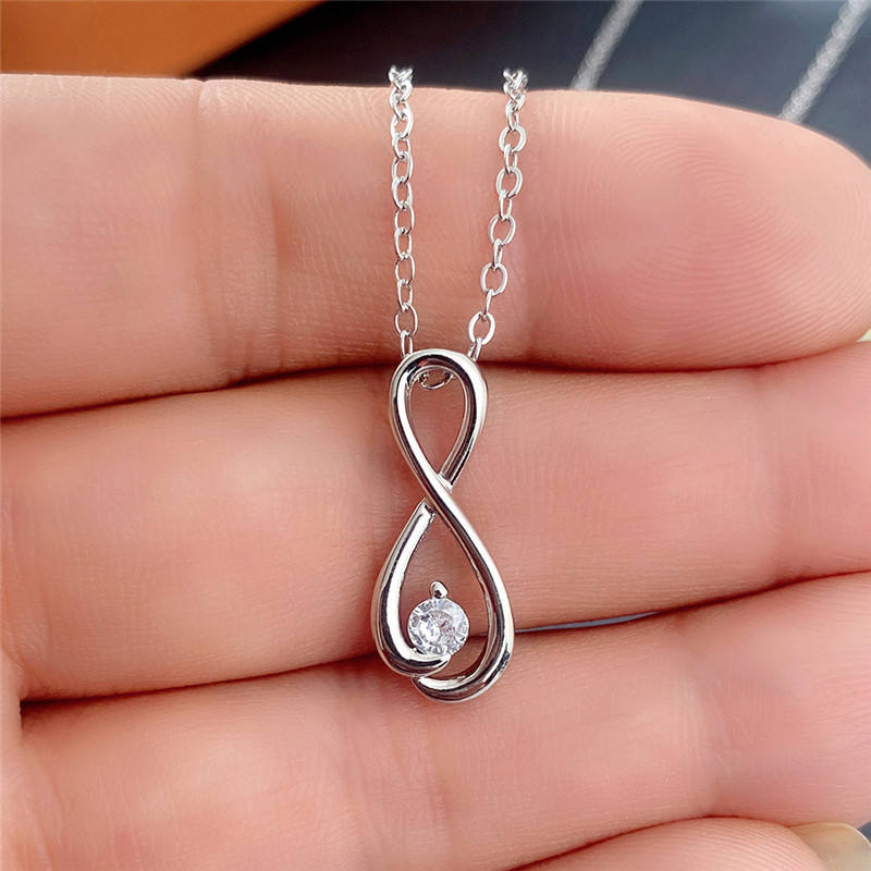 Collana con Ciondolo Infinito in Oro Bianco con Diamante Rotondo Incastonato a Griffe, Design Minimalista Unisex per Uso Quotidiano, Catena a Maglie