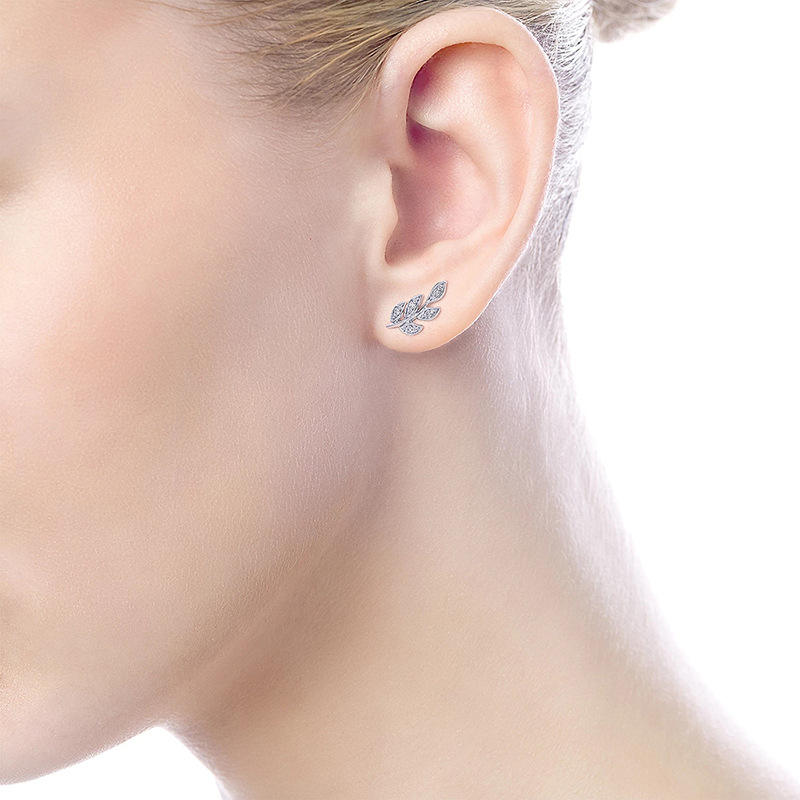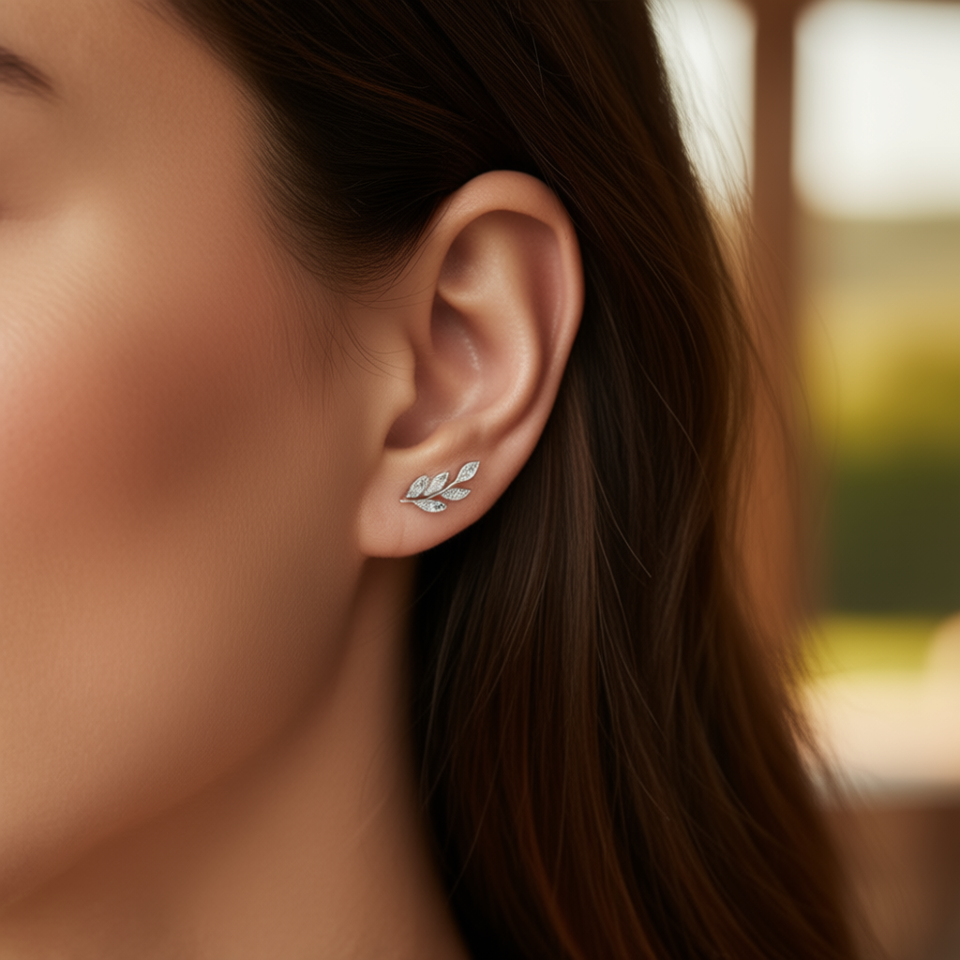 White Gold Leaf Stud Earrings With Marquise Cut Crystal Rhinestones For Women Party Classic Fashion Jewelry Silver Plated Alloy