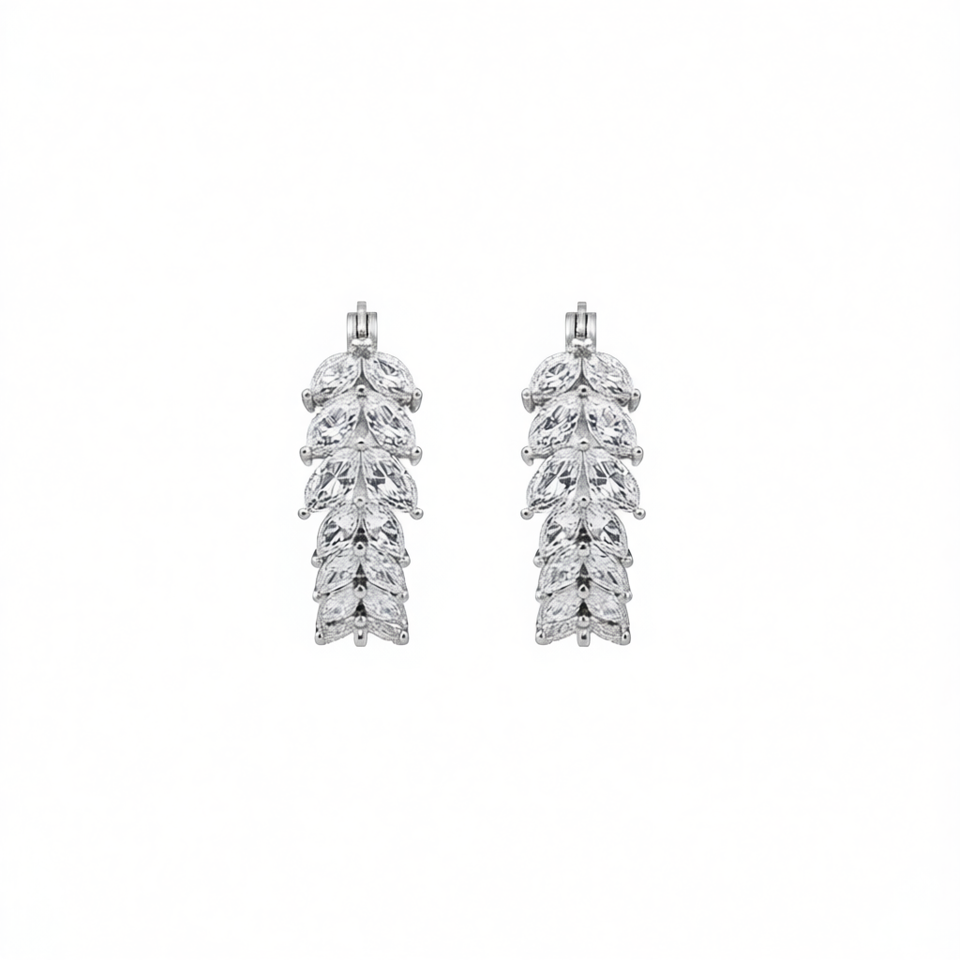 Orecchini Pendenti in Oro Bianco con Diamanti Taglio Marquise, Montatura a Griffe, Forma di Pianta, Gioielli di Lusso da Donna per Matrimonio
