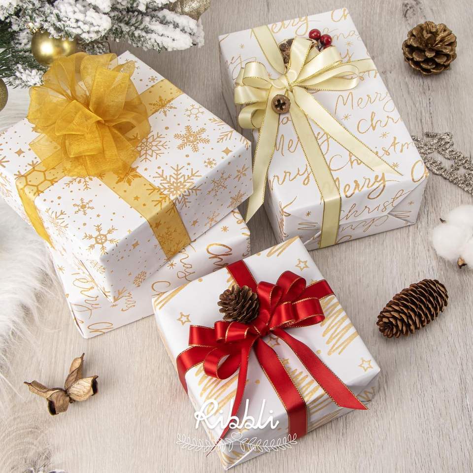 Carta da Regalo Natalizia Bianca e Oro, Mini Rotolo 17 Pollici X 10 con Motivo a Fiocchi di Neve e Alberi, Glitterata, per Forniture Festive Natalizie